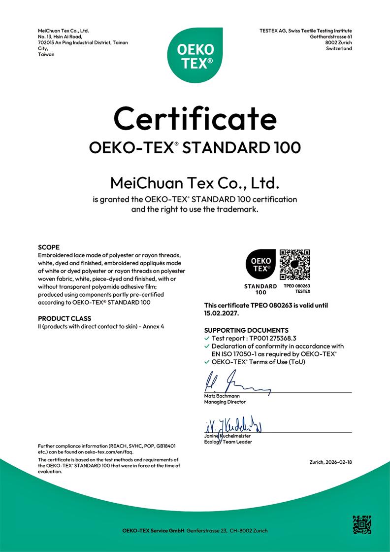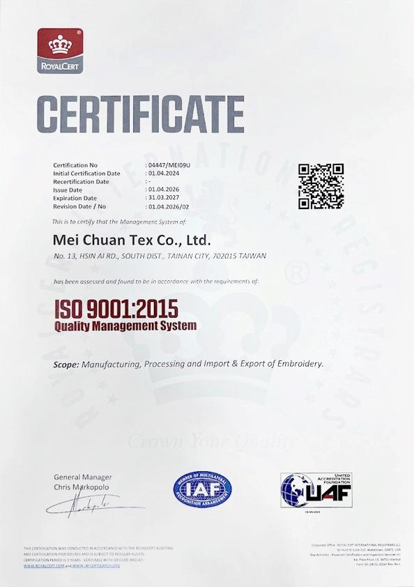 身為老牌的刺繡公司,通過各種認證和五十年的經驗來展現對客戶的責任。今天,刺繡已不再傳統,跨產業的合作已經開始,從時尚,到醫療,電子,汽車工業和智能紡織,都可以透過刺繡工藝得到提升。